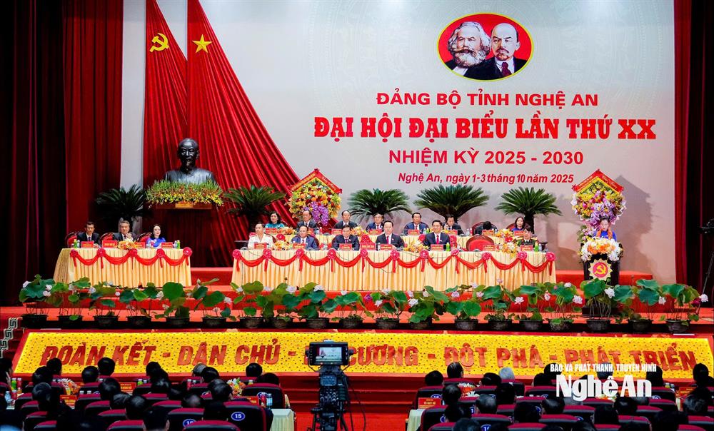 Sáng 2/10, Đại hội đại biểu Đảng bộ tỉnh Nghệ An lần thứ XX, nhiệm kỳ 2025 - 2030 khai mạc trọng thể tại Nhà Văn hóa Lao động tỉnh.