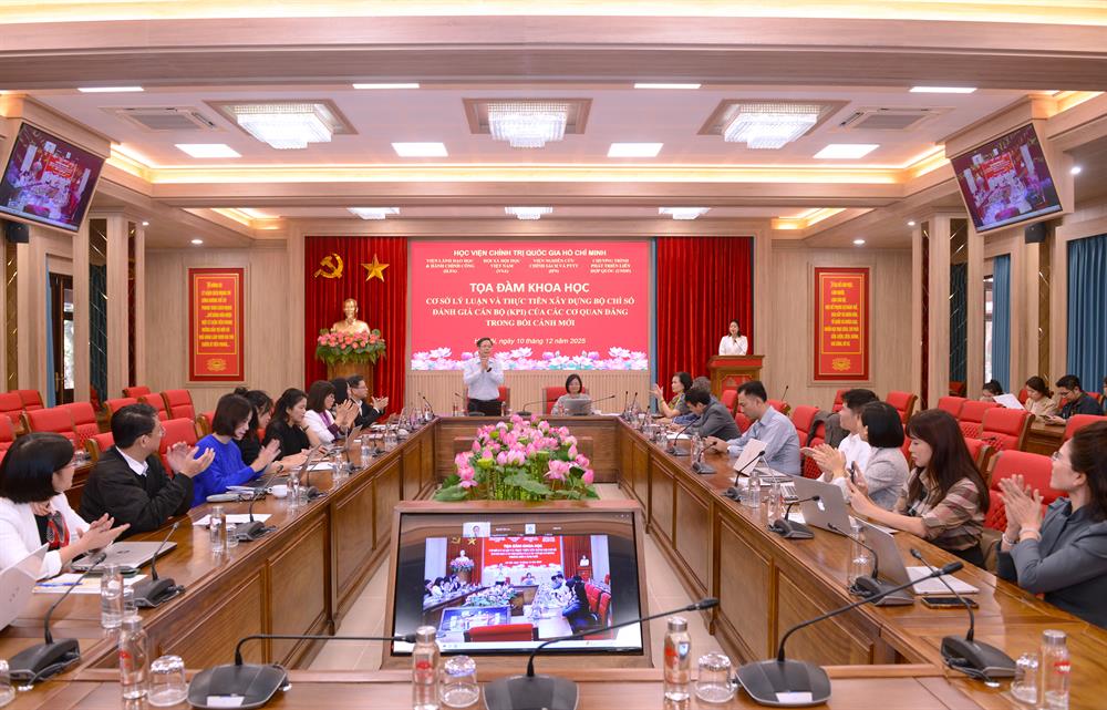 Chiều ngày 10/12/2025, Viện Lãnh đạo học và Hành chính công thuộc Học viện Chính trị quốc gia Hồ Chí Minh phối hợp với Hội Xã hội học Việt Nam, Viện Nghiên cứu Chính sách và PTTT, Chương trình phát triển Liên hợp quốc (UNDP) tổ chức Tọa đàm khoa học “Xây dựng Bộ chỉ số đánh giá hiệu quả công việc (KPI) đối với cán bộ, công chức làm việc trong các cơ quan của Đảng Cộng sản Việt Nam”.