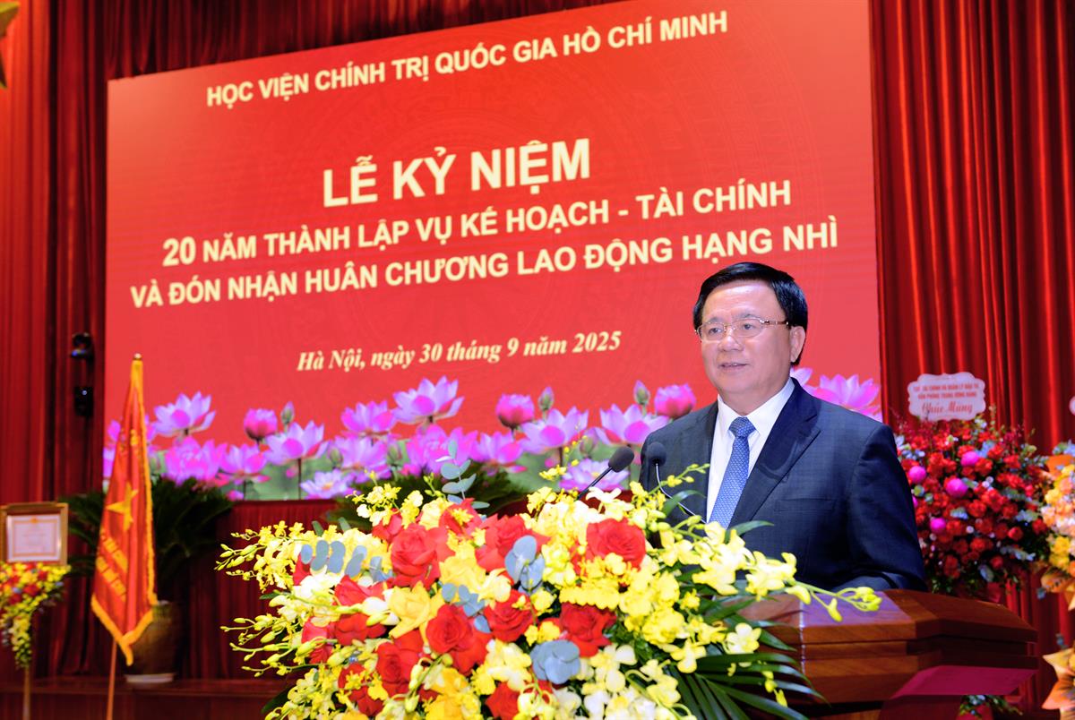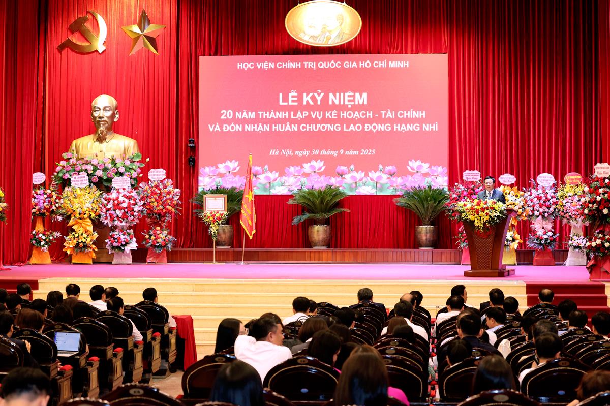 Nhiệt liệt chúc mừng tập thể Vụ Kế hoạch – Tài chính được nhận phần thưởng cao quý của Đảng và Nhà nước, phát biểu tại Lễ kỷ niệm, GS,TS Nguyễn Xuân Thắng, Ủy viên Bộ Chính trị, Giám đốc Học viện Chính trị quốc gia Hồ Chí Minh, Chủ tịch Hội đồng Lý luận Trung ương khẳng định: trải qua 20 năm xây dựng và trưởng thành, Vụ Kế hoạch - Tài chính đã phát triển mạnh mẽ về mọi mặt, hoàn thành xuất sắc chức năng tham mưu, quản lý và điều hành kế hoạch, tài chính, ngân sách, đầu tư xây dựng, tài sản công; góp phần quan trọng tạo nên nền tảng vững chắc cho sự phát triển của Học viện.